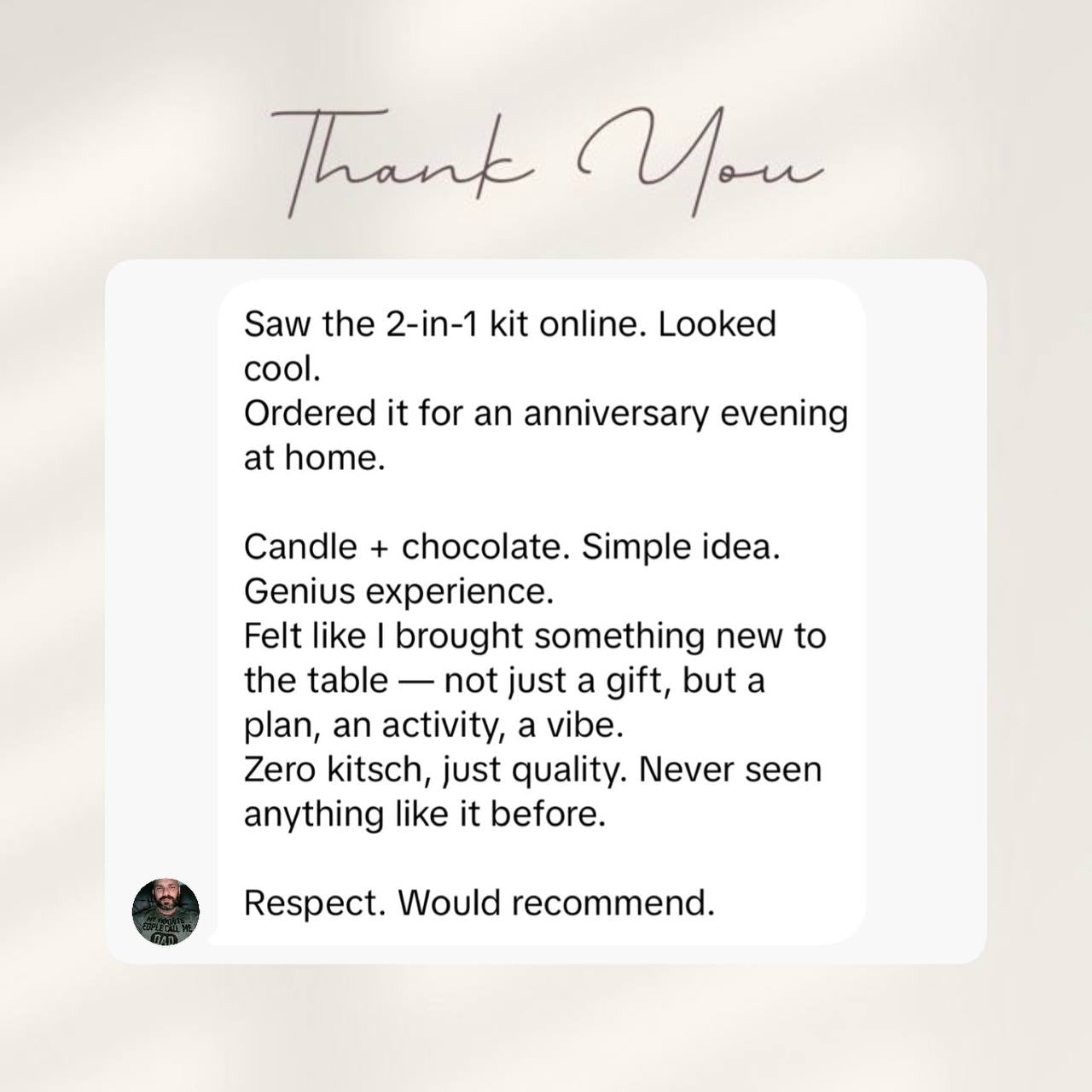 Nie wybieraj — połącz wszystko, co kochasz. Nasze zestawy 2w1 to zaproszenie do wspólnego tworzenia — pachnące świece i belgijska czekolada w jednym pudełku. Idealne na prezent, randkę, wieczór z przyjaciółką lub własny moment uważności.