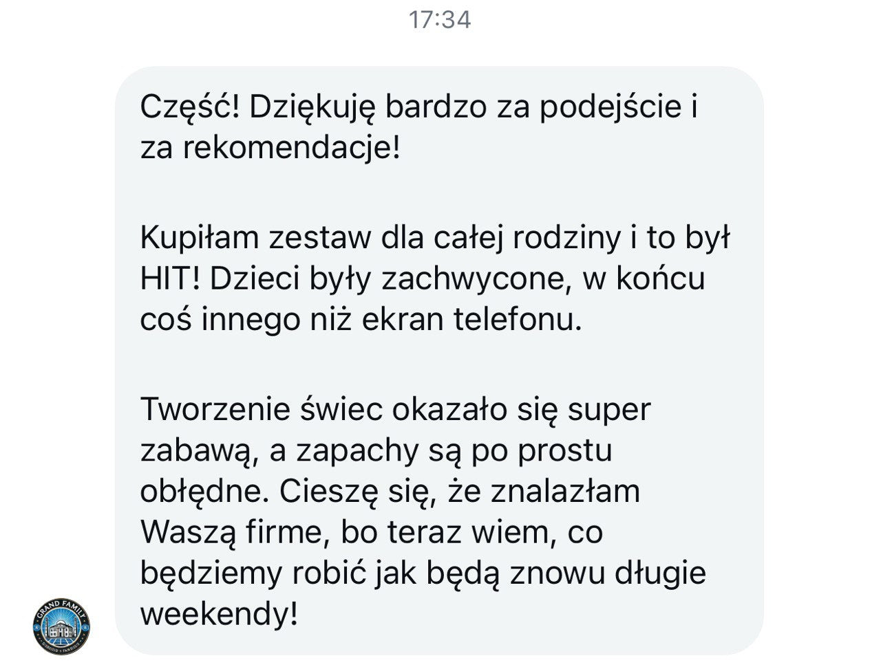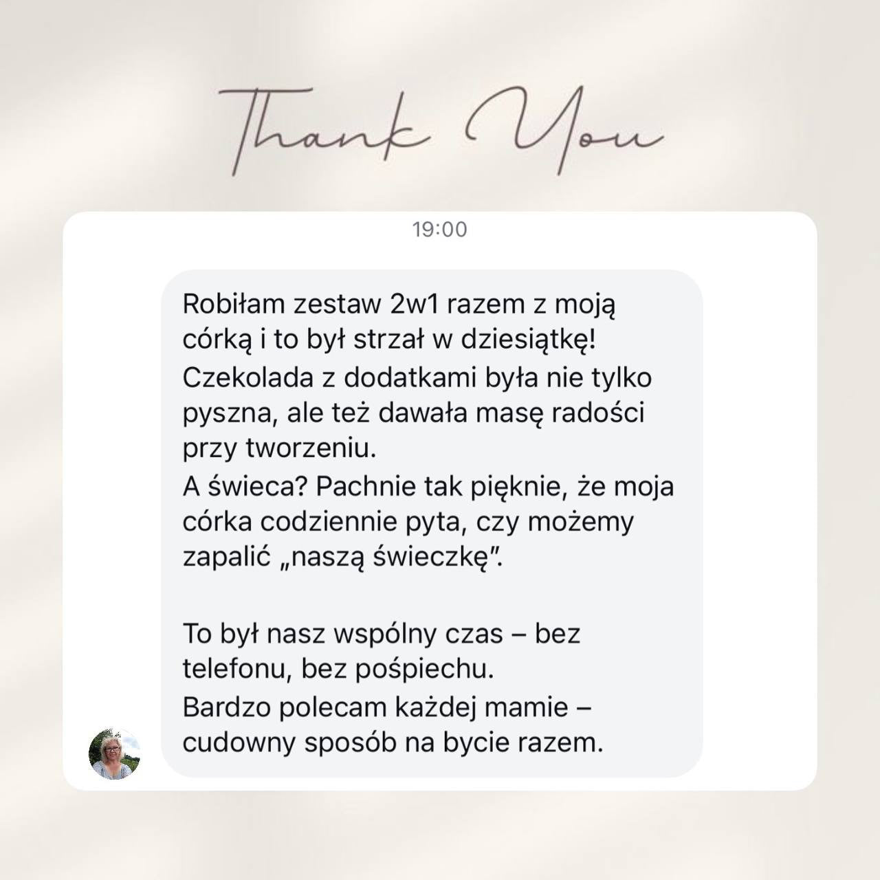„Zestaw do robienia świec HANDSY DIY to był strzał w dziesiątkę. Zapach olejków — cudowny, naturalny, delikatny. Wszystko pięknie zapakowane, instrukcja jasna, a sam proces — mega relaksujący. Zrobiliśmy świece razem przy winie i było to naprawdę wyjątkowe popołudnie. Idealne na prezent albo po prostu — dla siebie.”
